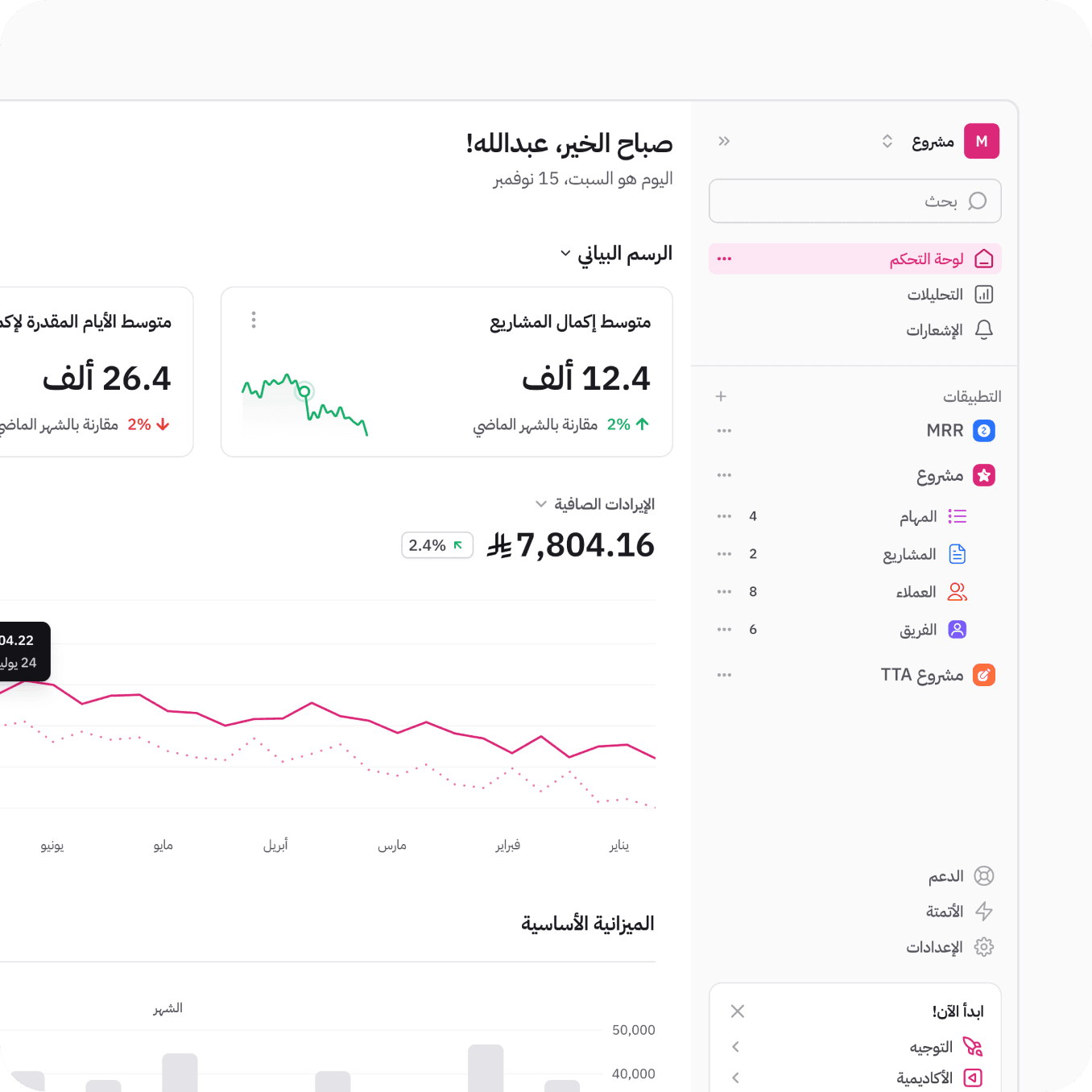 اجمع كل مهامك وبياناتك وتطبيقاتك في نظام واحد سعودي آمن يعمل بالذكاء الاصطناعي.
