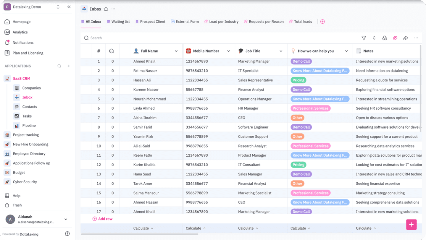 Datalexing delivers a seamless and quick learning experience, enabling teams to work more efficiently through interlinked tables, automation, and strong integrations. It also supports Arabic-speaking teams with local solutions that meet security requirements.