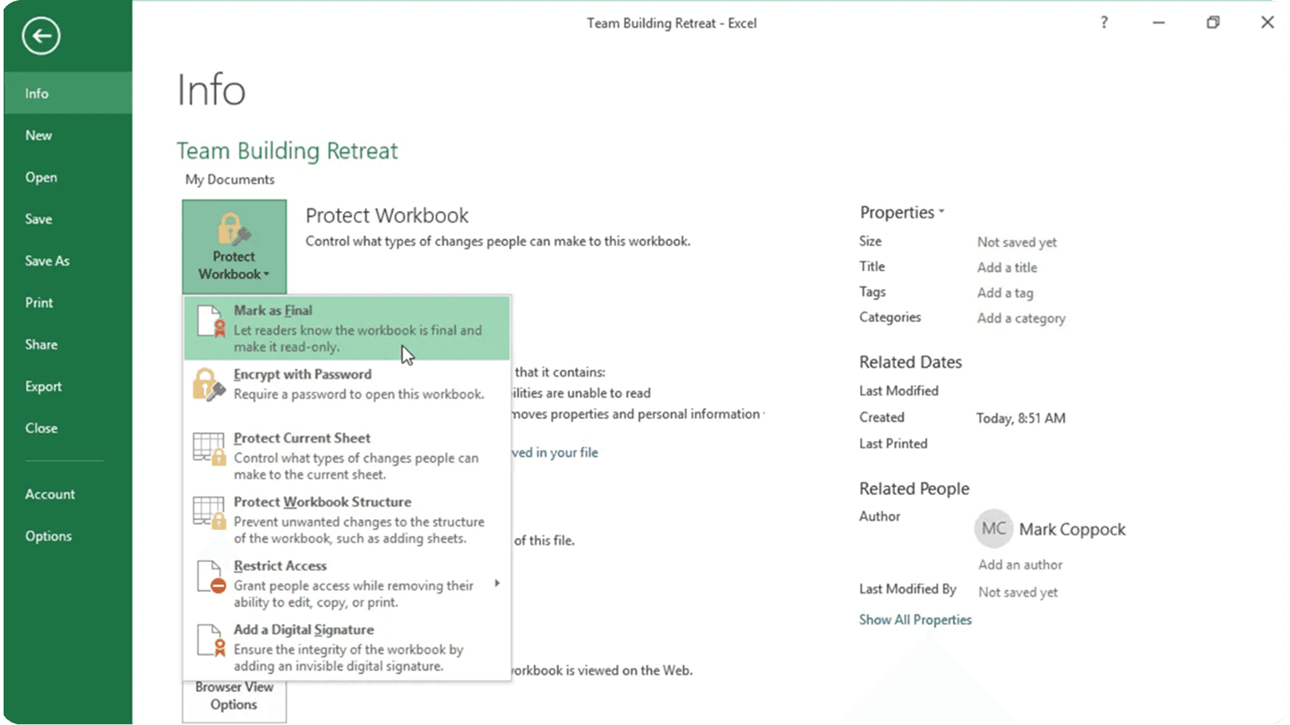 Excel: Permissions in Excel are basic and file-based. Users can set read-only or editing permissions for a file when shared via cloud services like OneDrive or SharePoint. However, it lacks fine-grained control, such as assigning different permissions to individual sheets or specific cells.